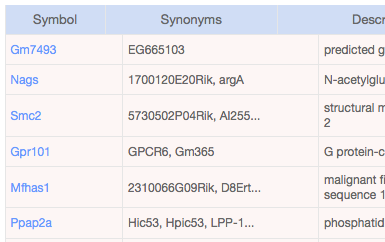 Search genes based on symbol or synonym matches or by uploading a list of genes.